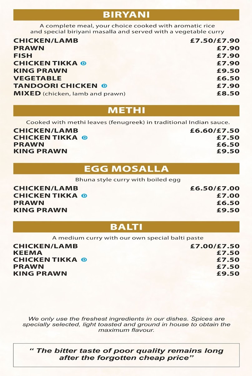- Variety: Dine on Chicken/Lamb Jalfrazi or indulgent Lamb Pasanda.